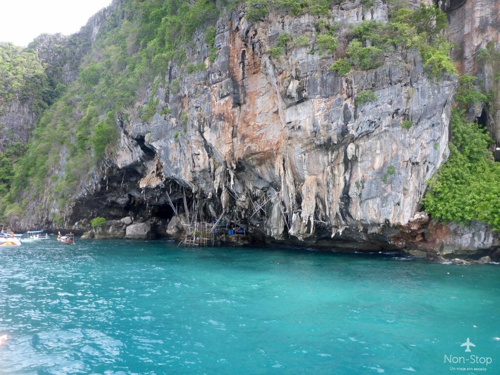 - Visitar Koh Phi Phi Leh: Es la playa de «La Playa», conocida como Maya Bay. Una de las playas más hermosas que vi en mi vida y a la cuál volvería miles y miles de veces. Podes visitarla en excursión, hay muchas que salen desde la mañana y duran todo el día. Te llevan a hacer snorkel en varios puntos de la isla, te llevan a viking caves, unas cuevas de la época de los vikingos donde hoy, viven varios locales que juntan nidos de golondrinas para exportarlos hacia China. Una historia muy interesante. También te llevan a andar en kayak a una laguna escondida muy digna de ver, y por último a la tan ansiada Maya Bay. Esa excursión es super recomendable. Sino, otra opción, es alquilar un longtail, y que te lleven hasta Maya Bay. Lo lindo de esta segunda opción, es que si vas temprano, probablemente encuentres la playa, sólo para vos.